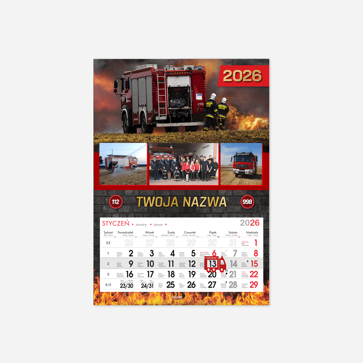 Nie musicie płacić od razu – gotowy projekt możecie przedstawić w jednostce lub na zarządzie. Nasi graficy przygotowują kalendarze strażackie z własnymi zdjęciami - każda jednostka otrzymuje bezpłatny projekt kalendarzy strażackich do zamówienia.