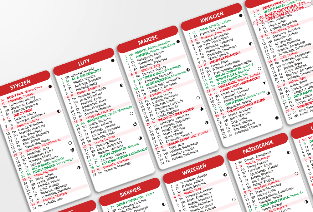 - Rozdzielczość: 300 dpi - kalendarium jest dostosowane do druku