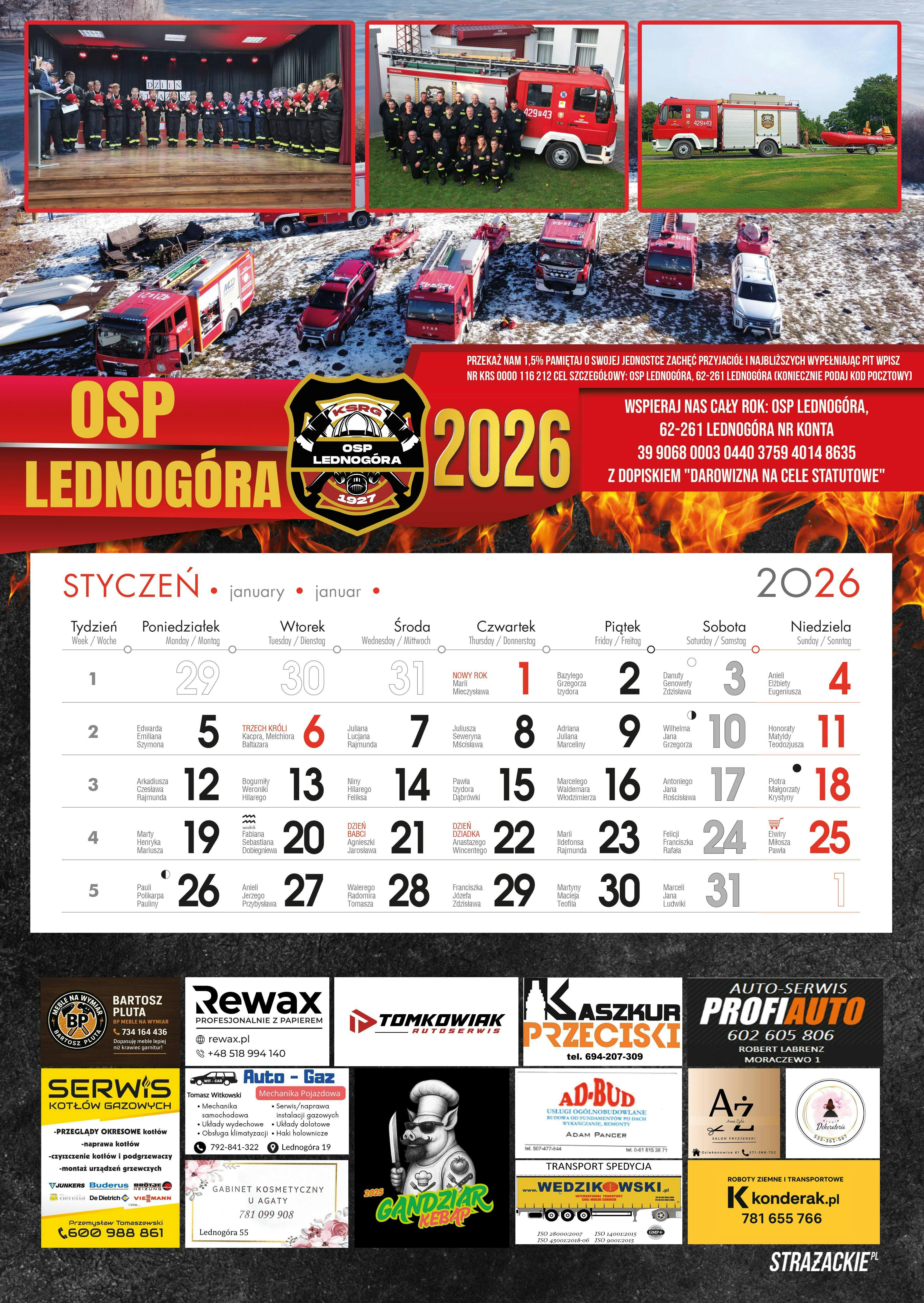 - Zastosowanie: kalendarze OSP, kalendarze klubowe, kalendarze firmowe