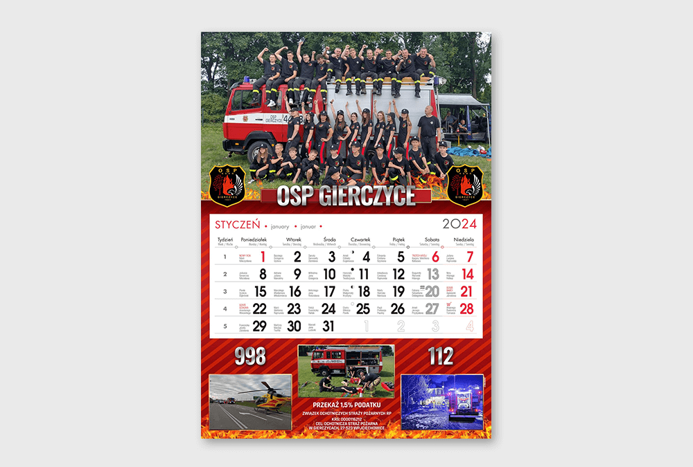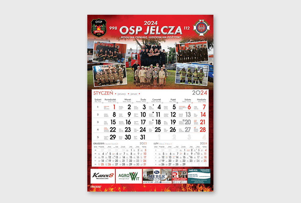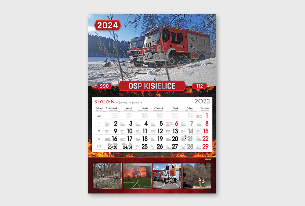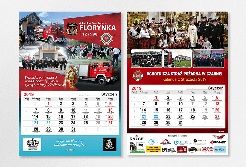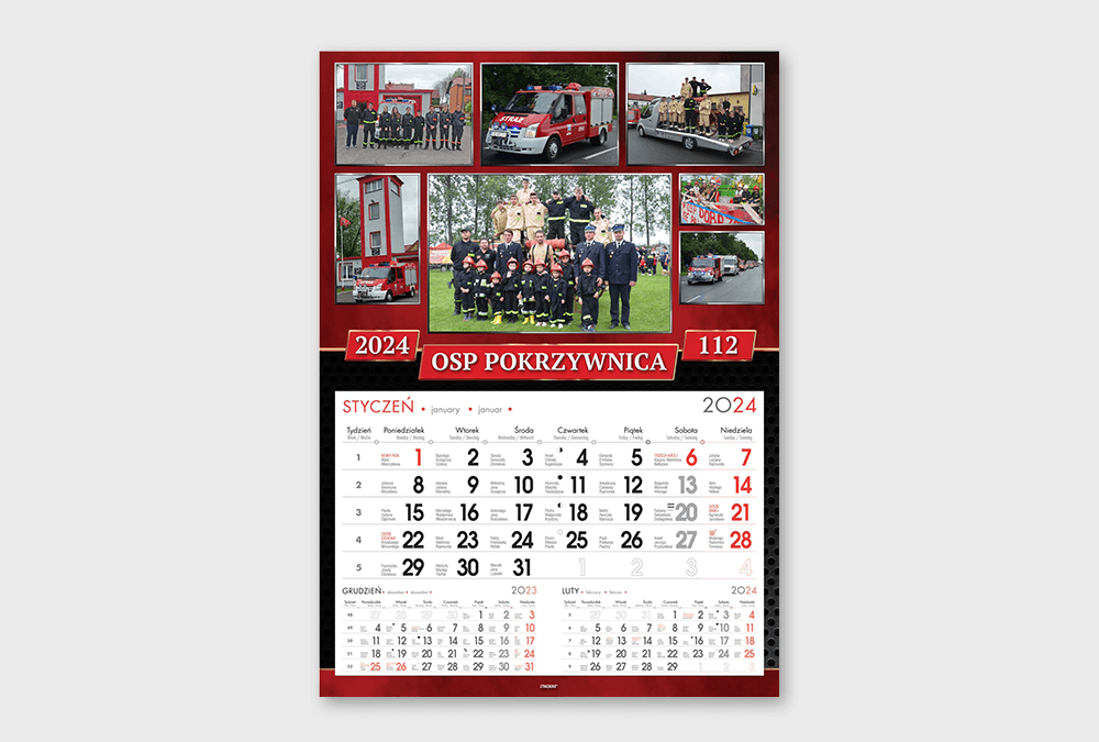 - Zastosowanie: kalendarze OSP, kalendarze klubowe, kalendarze firmowe