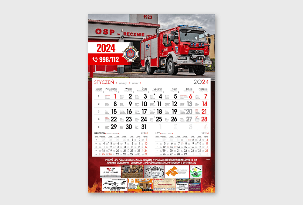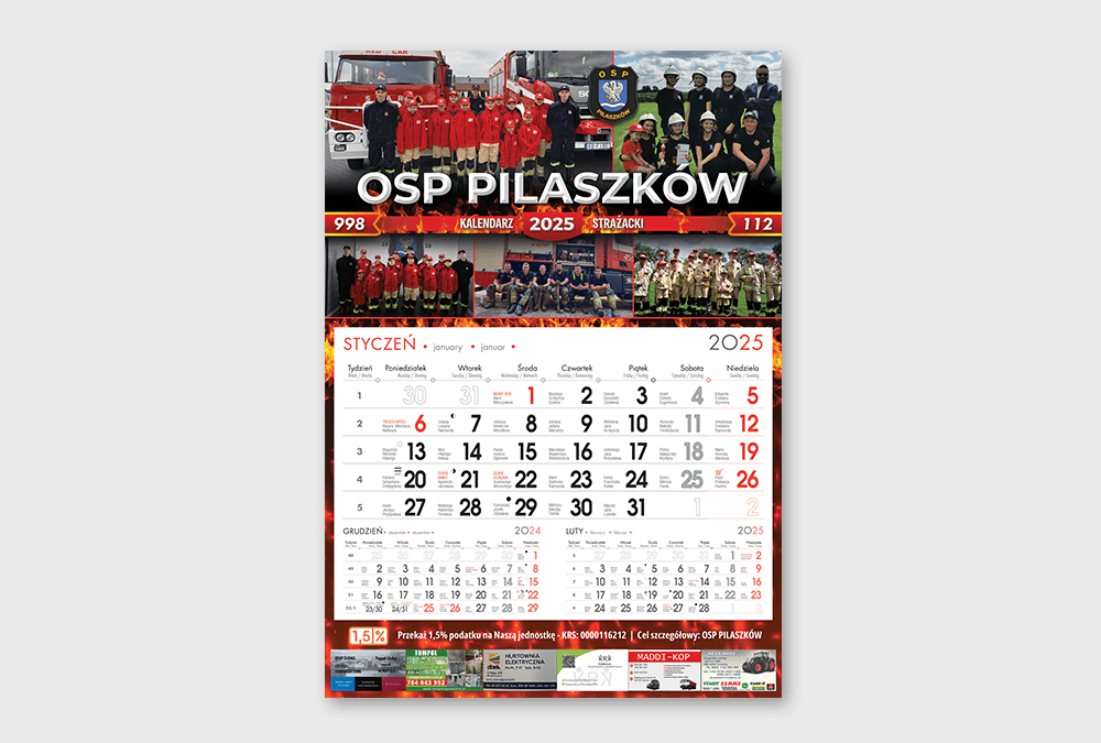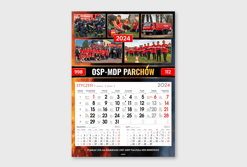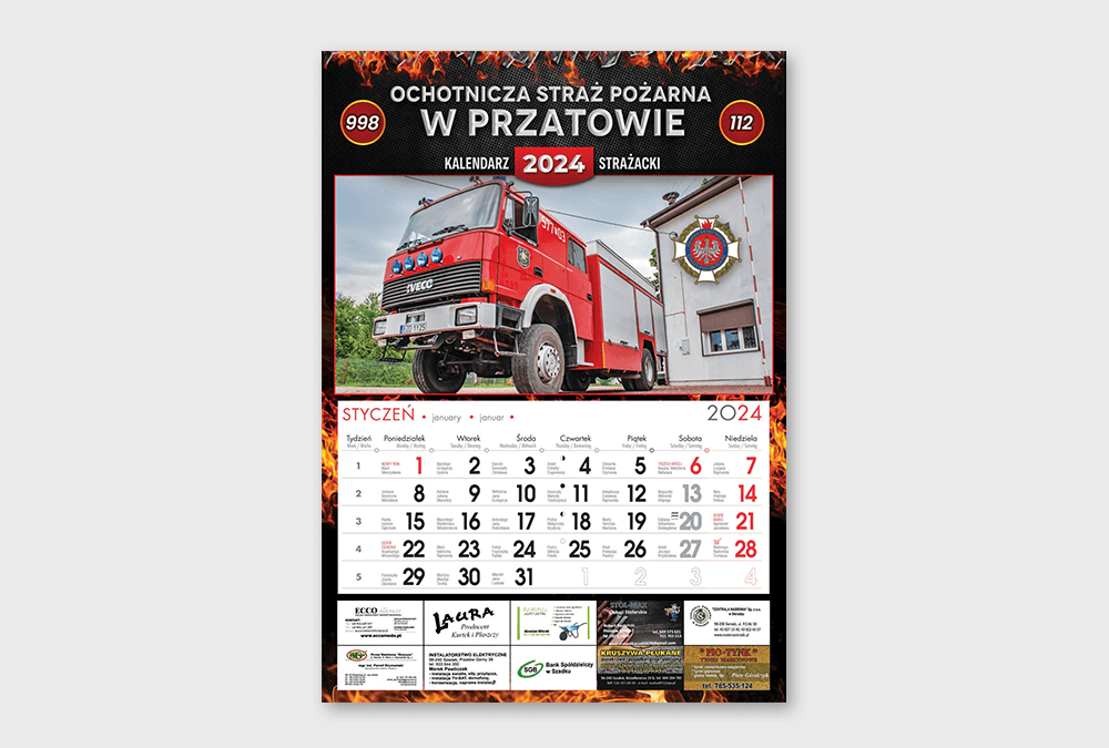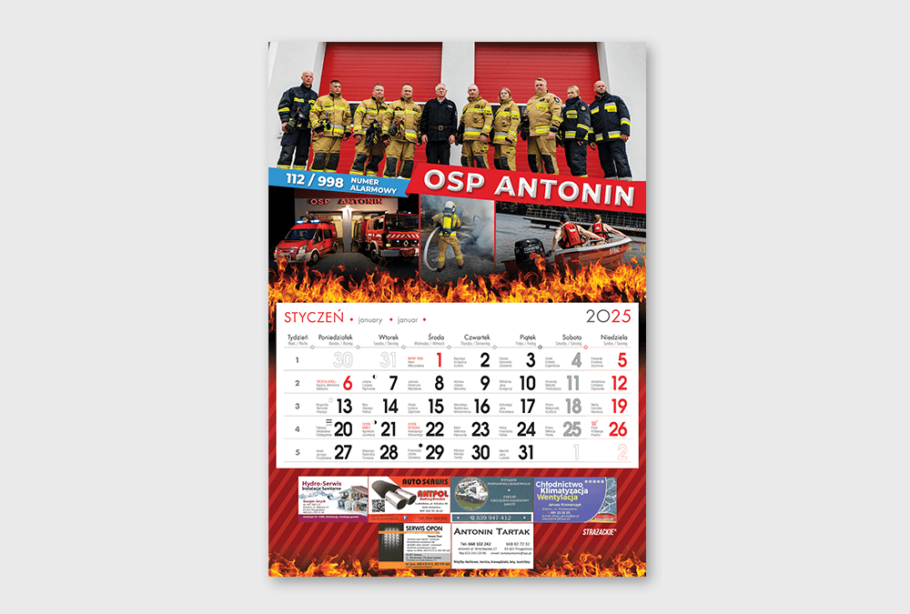 - Zastosowanie: kalendarze OSP, kalendarze klubowe, kalendarze firmowe