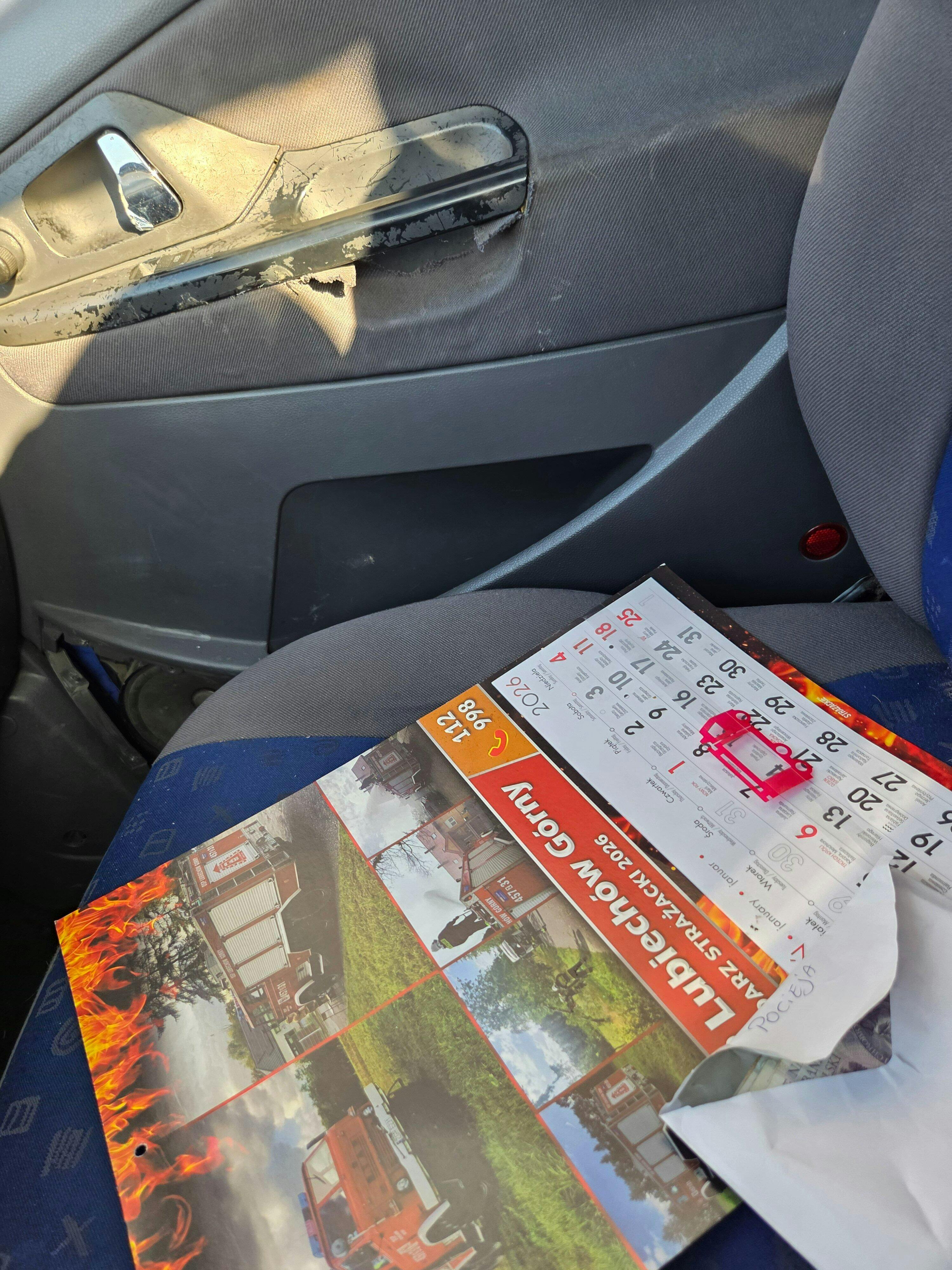 kalendarze strażackie jednodzielne A3 WYRYWANE na kartonie z okienkami wóz