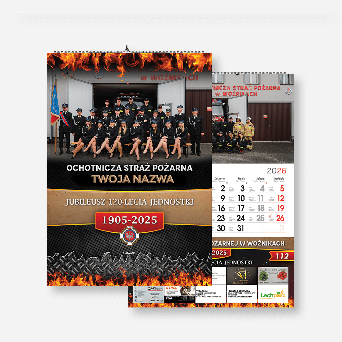 - Zastosowanie: kalendarze strażackie, kalendarze OSP, kalendarze klubowe, kalendarze firmowe.