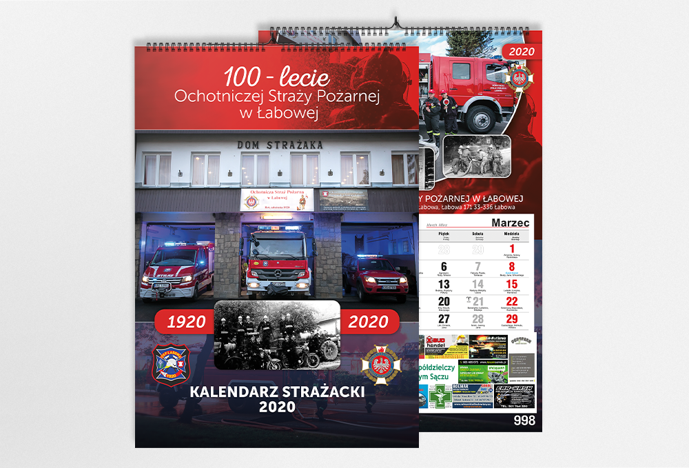 Jeśli jednostka OSP dysponuje ładnymi i ostrymi zdjęciami to oferowany przez nas kalendarz spiralowany w nakładzie już od 50 sztuk będzie idealnym rozwiązaniem. Ten produkt posłuży nie tylko jako kalendarz, ale również jako świetny gadżet czy dekoracja z motywem strażackim dzięki unikalnemu projektowi, który wykonujemy indywidualnie dla każdej z jednostek. Spirala umożliwia zawieszenie kalendarza i obracanie kart, bez konieczności ich wyrywania, dzięki czemu kalendarz nawet po minionym roku kalendarzowym może służyć jako strażacki plakat.